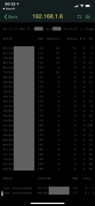 Using a hotspot to tether your device will pollute your results with that SSID showing up everywhere. Using screen and turning off your hotspot until you need to reconnect will avoid this. If your Pi dies while writing Kismet data to root, it will very likely corrupt the OS and need to go Fsck itself before it can be used autonomously again. Make sure to shut down your Pi, or have a "safe kill" button to properly shut down your Pi after a recon run if you can't log in via SSH.